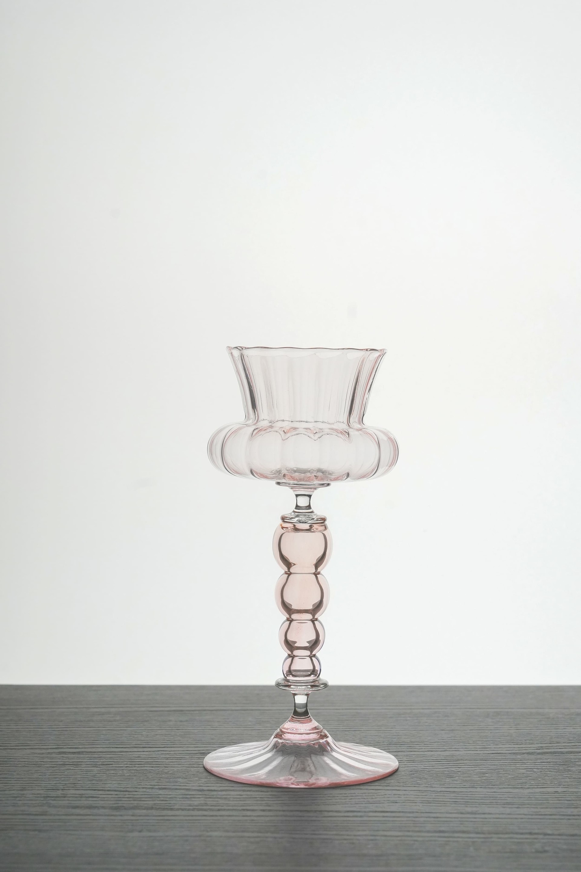 영롱한 자태의 유리작품은 Glory G 작가가 블로잉을 통해 제작한 고블렛 잔입니다. 작지 않은 크기에서 느껴지는 형태의 유려함, Stem 부분의 화려한 색감, 각기 다른 형태에서 나오는 자연스러움.이 모든 미감은 불 앞에서 유리를 불고, 붙이고, 다듬는 작가의 열정으로 부터 시작합니다.