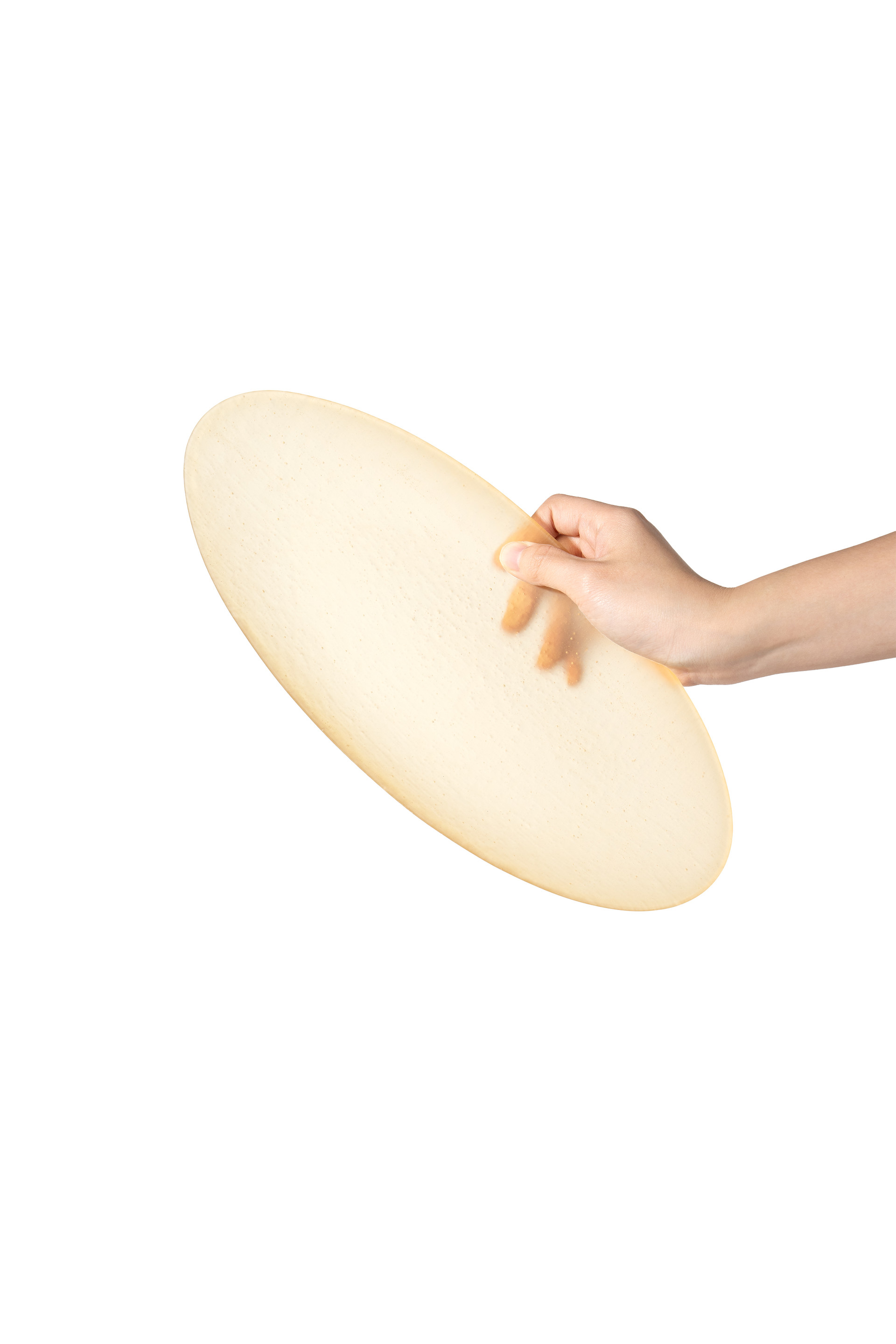 얇고 투명한 유리 위로 모시 결을 닮은 미세한 텍스처가 스며든 오발 플레이트입니다.