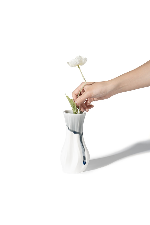 빛을 받으면 은은하게 반짝이는 표면이 마치 물결 위로 번지는 달빛처럼 공간에 신비로운 분위기를 더합니다. 백자의 바탕 위로 퍼지는 무지갯빛 광채는 꽃을 담은 순간까지 특별한 감각을 전해줍니다.