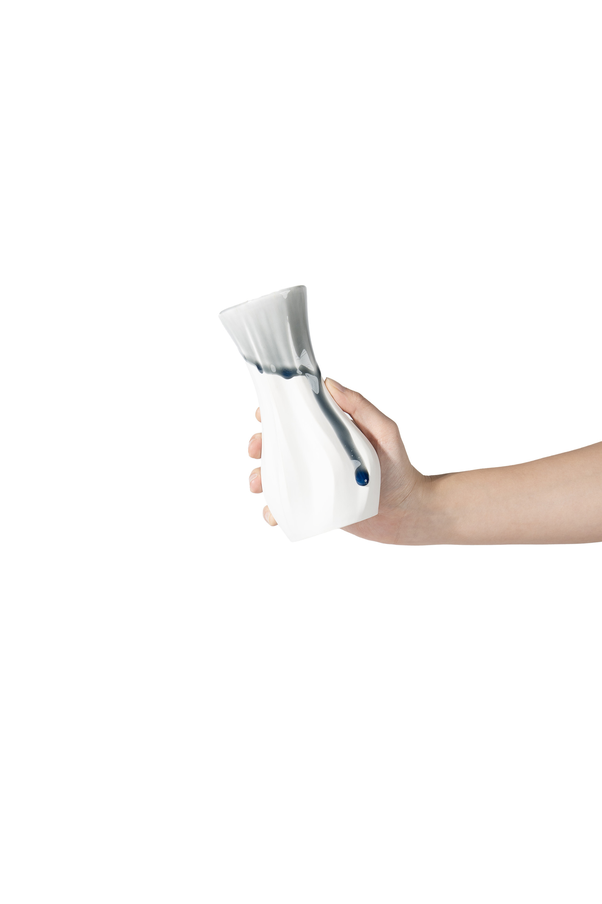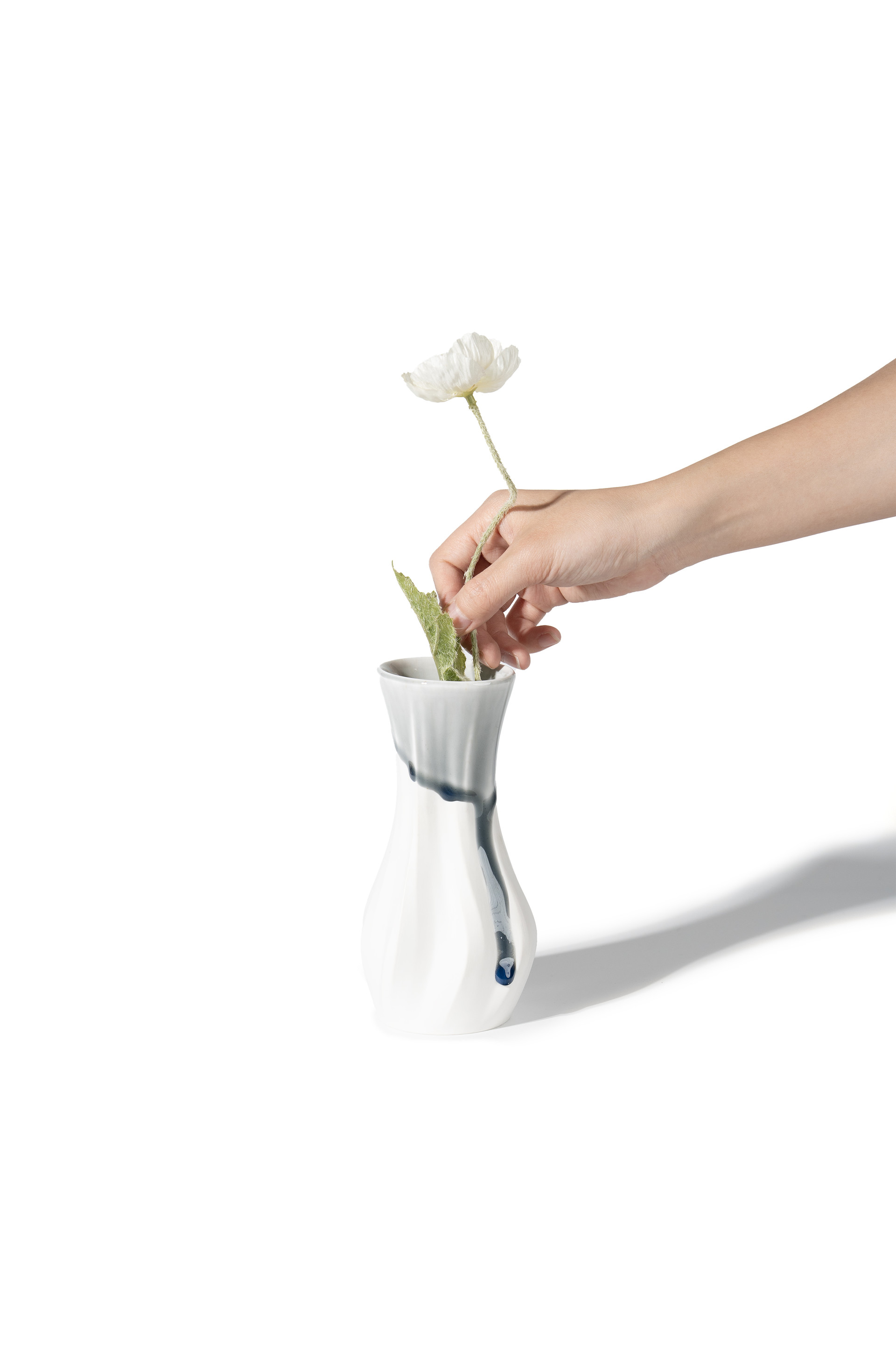 섬세하게 빚은 백자 위에 흐름유약을 더해 완성한 화병입니다.