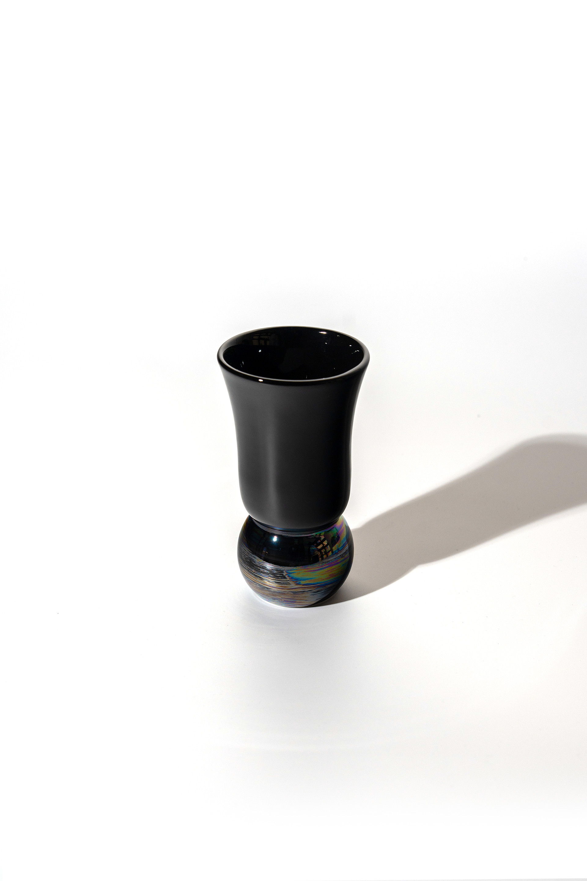 섬세하게 빚은 백자 위에 자개빛 유약을 더해 완성한 고블렛 잔.