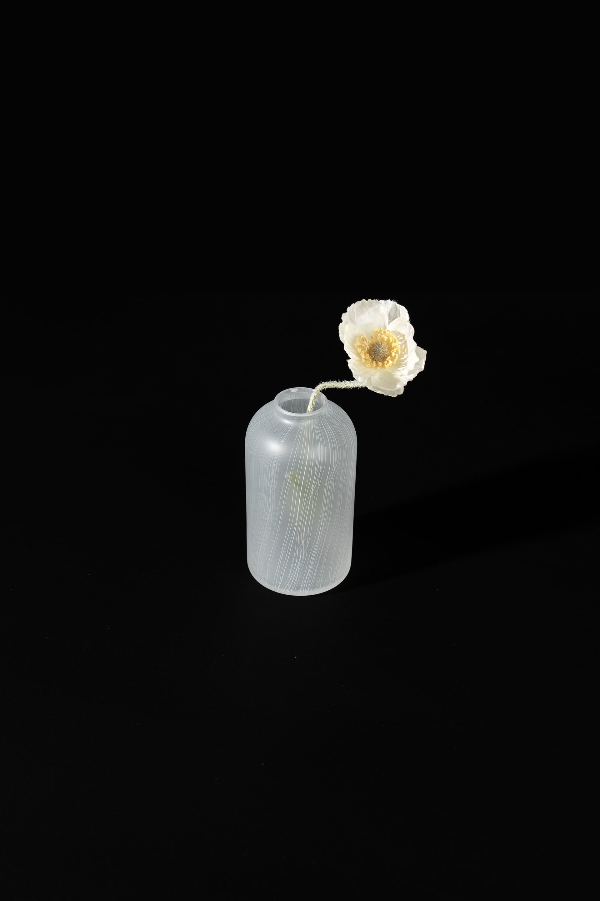 유리 표면 아래로 은은하게 이어지는 맥의 흐름이 잔과 접시, 화병의 형태 안에서 조용히 드러납니다. 투명한 물성 속에 축적된 흔적은 차를 마시고, 꽃을 꽂고, 새로운 일상을 시작하는 순간을 한층 더 맑고 고요하게 만들어줍니다.