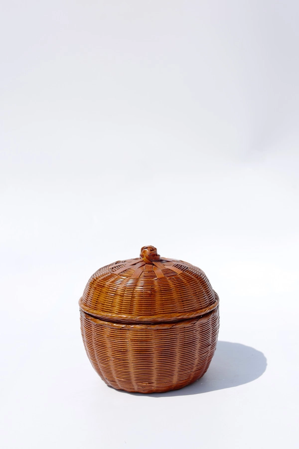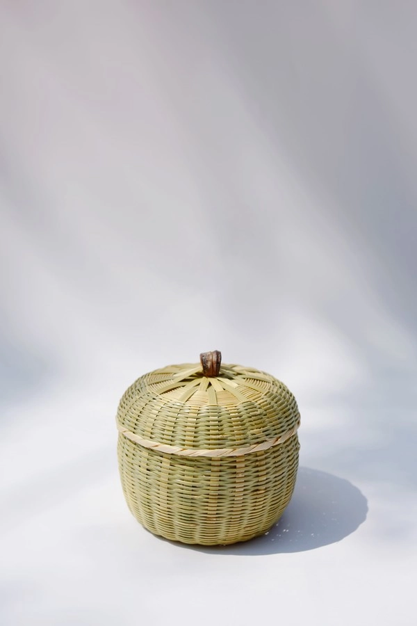 담양의 대나무를 얇게 잘라 엮은 후, 위에 옻을 칠하여 더욱 습기와 오염에 강한 단지입니다.