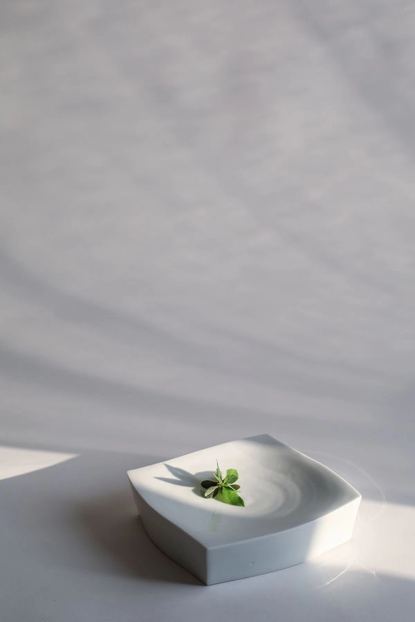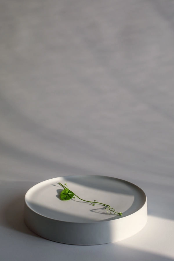 장재녕 작가의 사각 플레이트는 군더더기 없는 깔끔한 디자인으로 요리를 돋보이게 합니다. 섬세하게 균형 잡힌 곡선과 담백한 실루엣으로 세련된 미감을 느낄 수 있습니다.